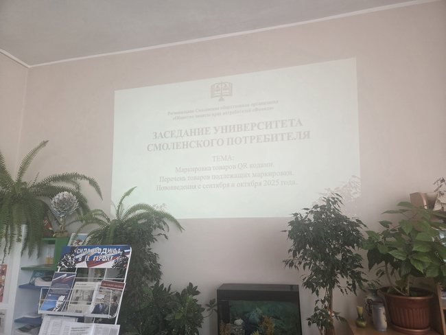 20.08.2025 г. юрист РСОО «Общество защиты прав потребителей «Фемида» Шадрина Раиса Николаевна, в рамках проекта «Маркировка товаров «Честным знаком» - гарантия качества» (ставший победителем конкурса на получение субсидий от Министерства Смоленской области по внутренней политике и Фонда президентских грантов), провела семинар на тему: «Маркировка товаров QR-кодами. Перечень товаров, подлежащих маркировке. Нововведения с сентября и в октябре 2025 года».