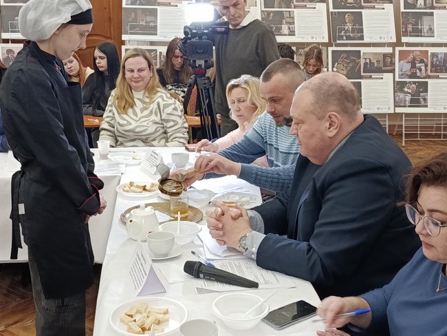 18.11.2025 г., в 13:00, в рамках проекта «Маркировка товаров „Честным знаком“ — гарантия качества» (победитель конкурса на получение субсидий от Министерства Смоленской области по внутренней политике и Фонда президентских грантов) состоялось открытое мероприятие по сравнительной органолептической оценке товаров, маркированных QR‑кодом: консервы рыбные — шпроты в масле.