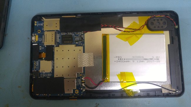 В процессе диагностики обнаружен дефект: не включается, не заряжается. Также в процессе диагностики установлено, что возникающий дефект связан с наличием неисправности главной платы планшета (Фото 3).
