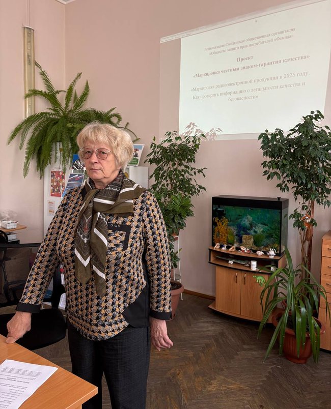 30.09.2025 г. Региональная Смоленская общественная организация «Общество защиты прав потребителей «Фемида» провела семинар на тему: «Маркирование QR-кодами. Радиоэлектронные товары. Как проверить информацию о легальности, качестве и безопасности товаров» в здании Смоленской областной универсальной научной библиотеки имени А.Т. Твардовского в рамках проекта «Маркировка честным знаком - гарантия качества», победителя конкурса на получения субсидии Министерства Смоленской области по внутренней политике и Фондом президентских грантов. На семинаре присутствовали 13 слушателей.