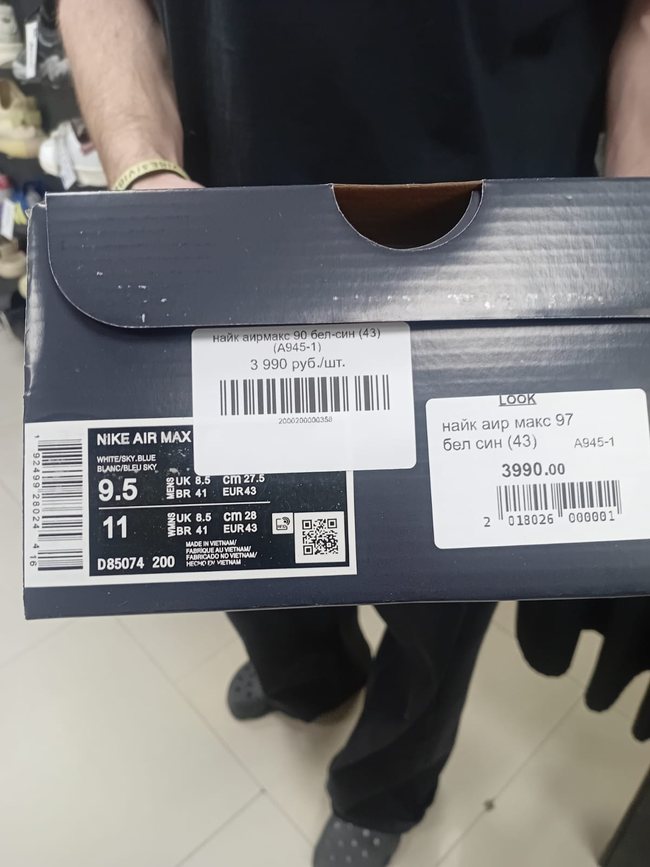 В результате проверки установлено, что в продаже находились товары как с наличием QR‑кодов, так и с их отсутствием. На коробках обуви QR‑коды имеются; на брюках и на большом количестве других товаров QR‑коды отсутствуют — указаны только наименование товара и цена.